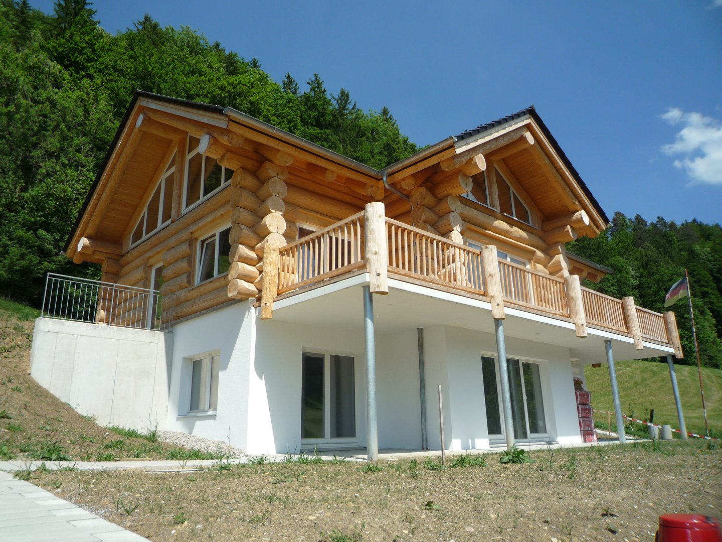 An der Ohrütistrasse in Steg (Tösstal) wurden bis 2016 drei Naturstamm-Blockhäuser errichtet.