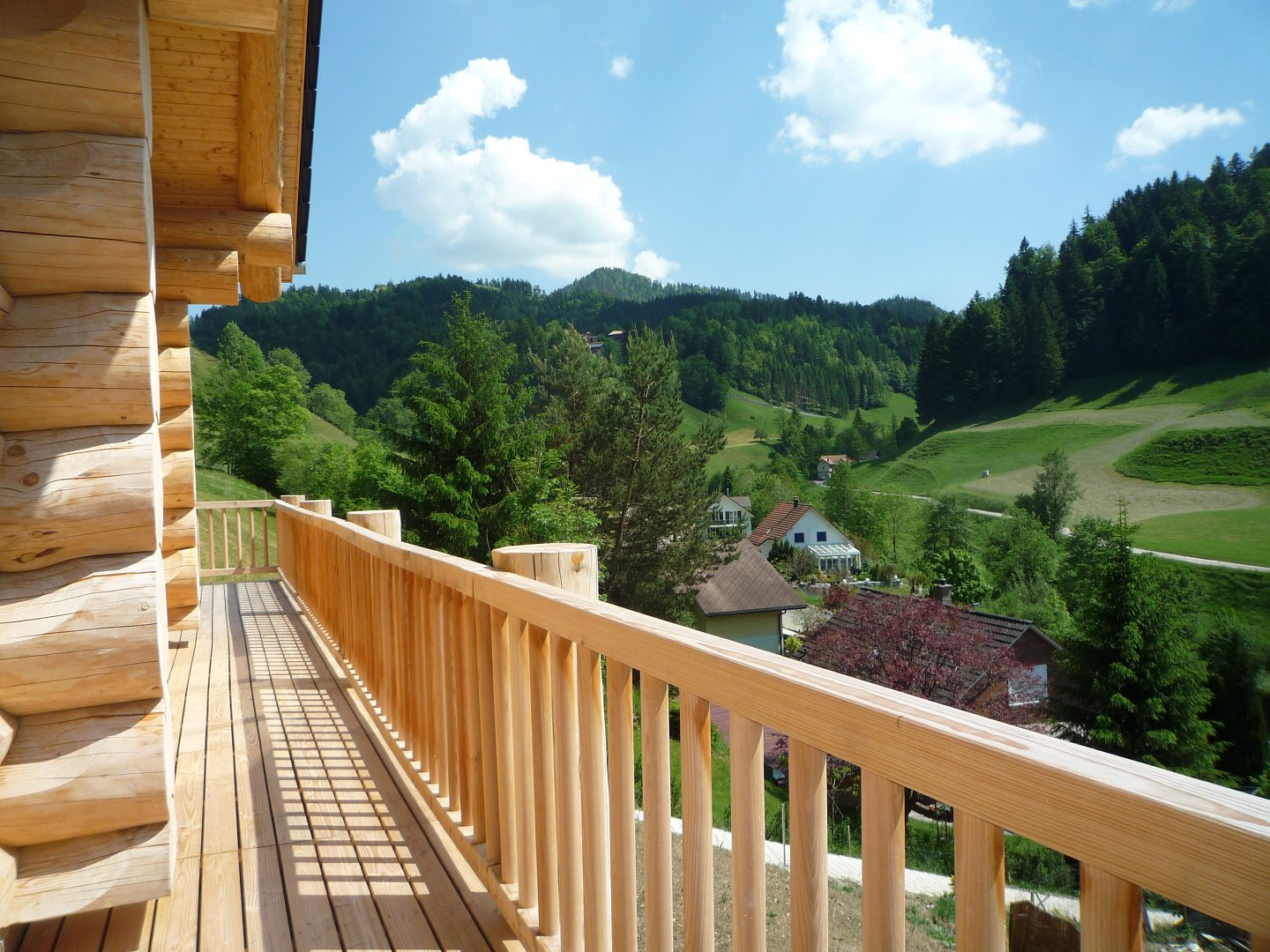 3 Naturstamm-Blockhäuser mit Tiefgarage